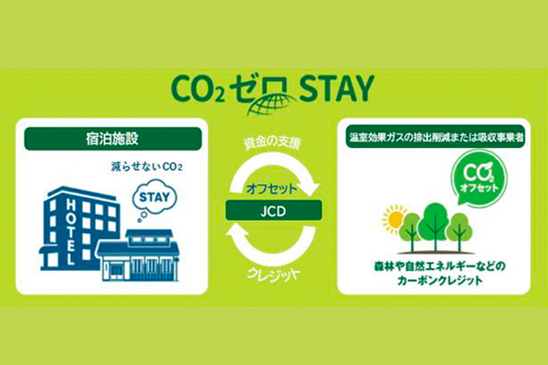 今回ご用意した本プランは、株式会社 JTB コミュニケーションデザインが提供する「CO₂ゼロSTAY®」を利用するもので、ご宿泊で発生するCO₂の排出相当量を再生可能エネルギーの拡大や日本全国の森林保全活動等のCO₂削減活動に投資することにより、宿泊で排出される温室効果ガスを埋め合わせる仕組みです。本プランご利用のお客様は、宿泊するだけでCO₂削減活動に貢献することができます。