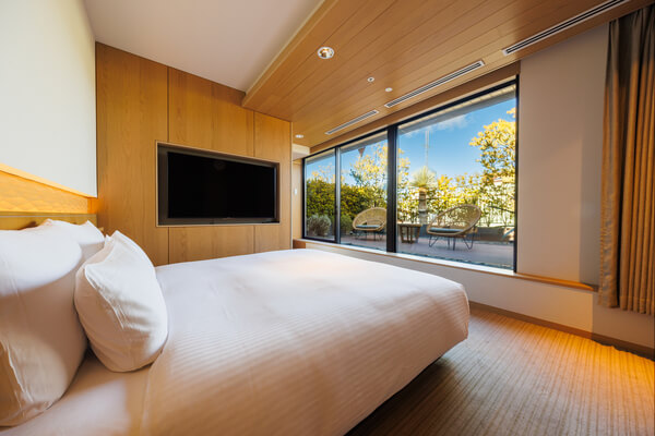 足元まである大きな窓からは鶴岡八幡宮二の鳥居を眺められ、鎌倉らしい景色をご覧いただけるダブルルームです。