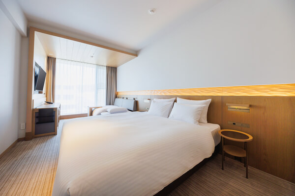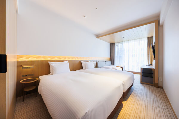 120cm幅のシングルサイズベッドを2台設置。過ごしやすい空間と機能性を両立させたツインルームです。